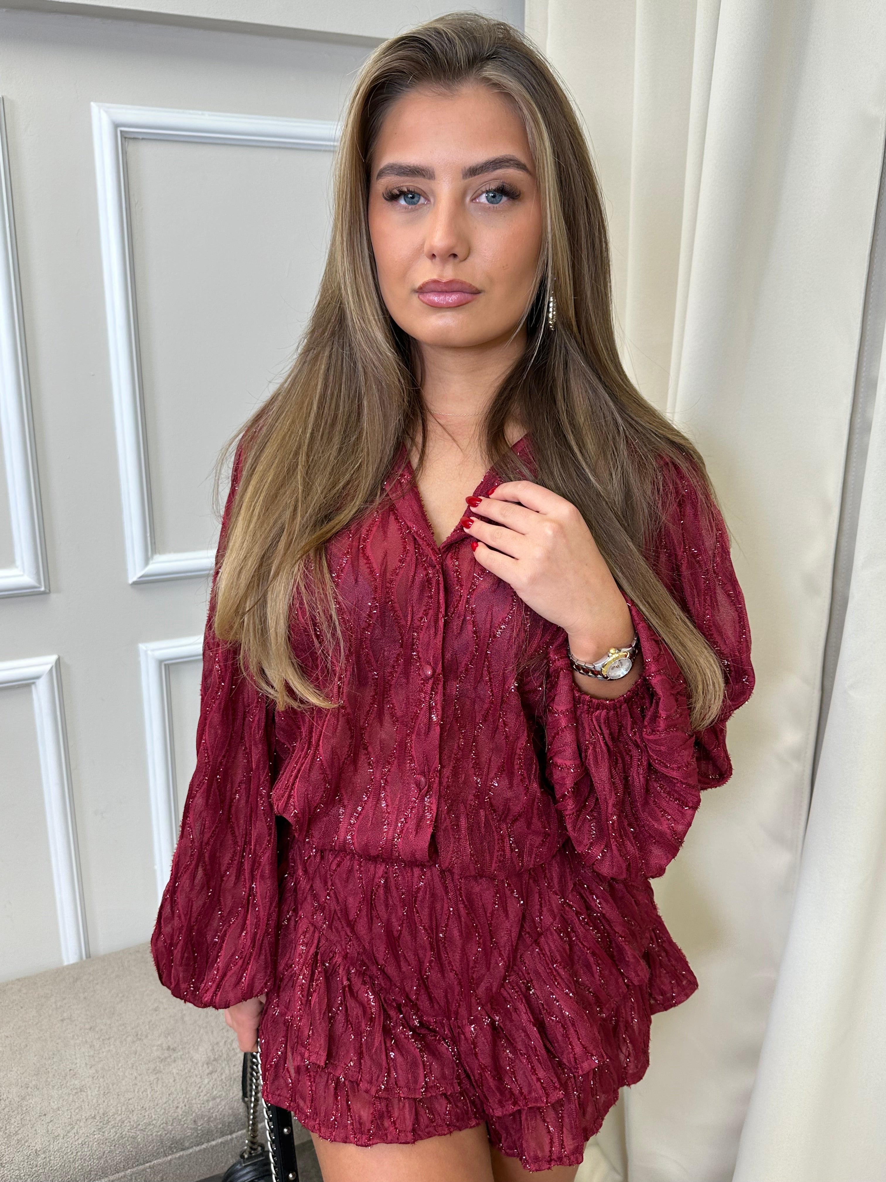 Burgundy sequin short set