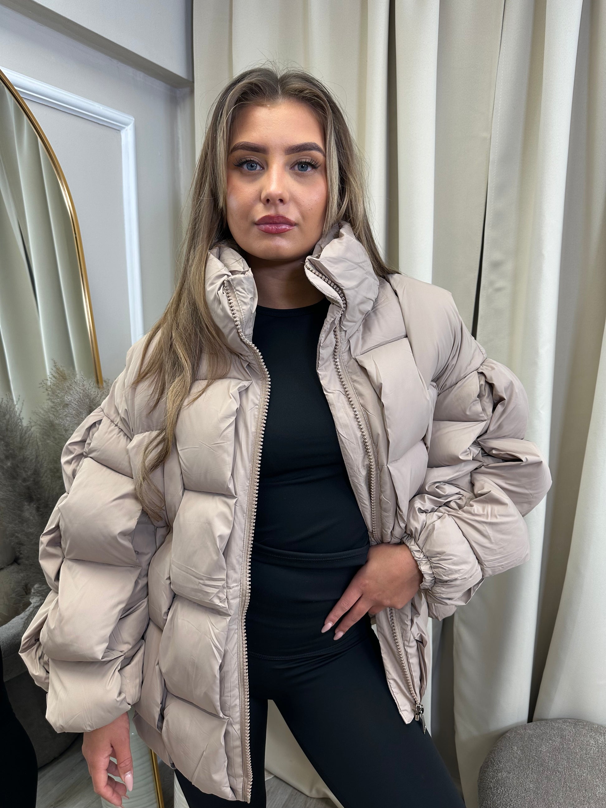 PLEAT DETAIL FUNNEL NECK PUFFER JACKET